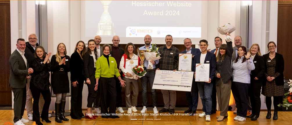 Am Donnerstag, dem 4. Dezember 2025, hat das BIEG (Beratungs- und Kompetenzzentrum Elektronischer Geschäftsverkehr) Hessen in den Räumen der Industrie- und Handelskammer (IHK) Frankfurt am Main kleine und mittlere Unternehmen mit dem 15. Hessischen Website Award für herausragende Internet-Auftritte ausgezeichnet. Die Auszeichnung wurde in Gold, Silber und Bronze vergeben und ist insgesamt mit 10.000 Euro dotiert.