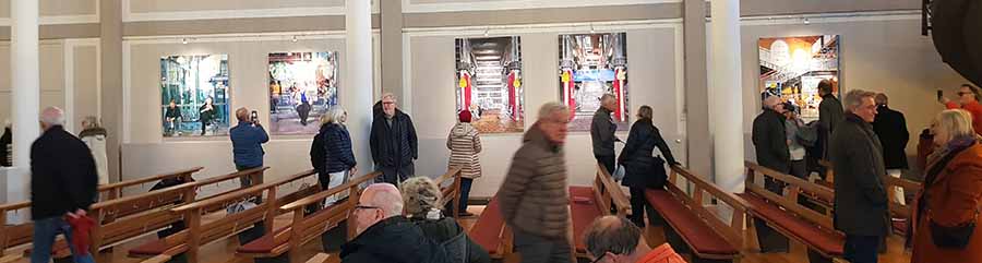 Am Sonntag, dem 8. Februar 2026, wurde in der Evangelischen Kreuzkirche nach dem Gottesdienst die Ausstellung „Heilige Momente“ der Malerin Monika Geisbüsch feierlich eröffnet. In die Ausstellung führte der Kunstexperte und frühere Galerist der Galerie Mainzer Kunst, Rolf Weber-Schmidt, ein.