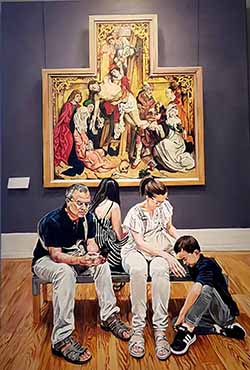 Die Figuren, so Weber-Schmidt weiter, wirkten häufig wie Alltagsnomaden: körperlich anwesend, innerlich jedoch in sich selbst versunken. Zwischenmenschliche Beziehungen würden nicht erzählerisch, sondern als psychologische Zustände sichtbar. Blickrichtungen, Körperhaltungen und räumliche Anordnungen formten fragile Beziehungsgeflechte, geprägt von einer Ambivalenz aus Nähe und emotionaler Abwesenheit.