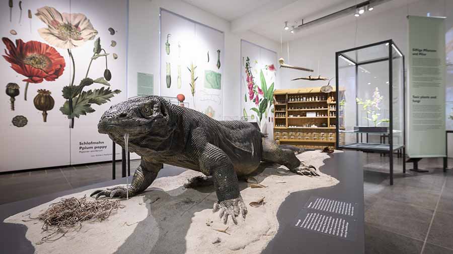 Eigens für die Ausstellung entstanden im Museum unter anderem ein lebensgroßes Modell einer Seewespe sowie ein Abguss eines Komodowarans. Die Seewespe steht für die Extreme unter den Gifttieren: Ihr hochwirksames Gift kann nach Kontakt mit den Tentakeln innerhalb weniger Minuten lebensgefährlich werden. Der Komodowaran hingegen galt lange als Beispiel für bakterielle Infektionen durch seinen Biss – heute weiß man, dass Giftdrüsen im Unterkiefer eine entscheidende Rolle spielen.