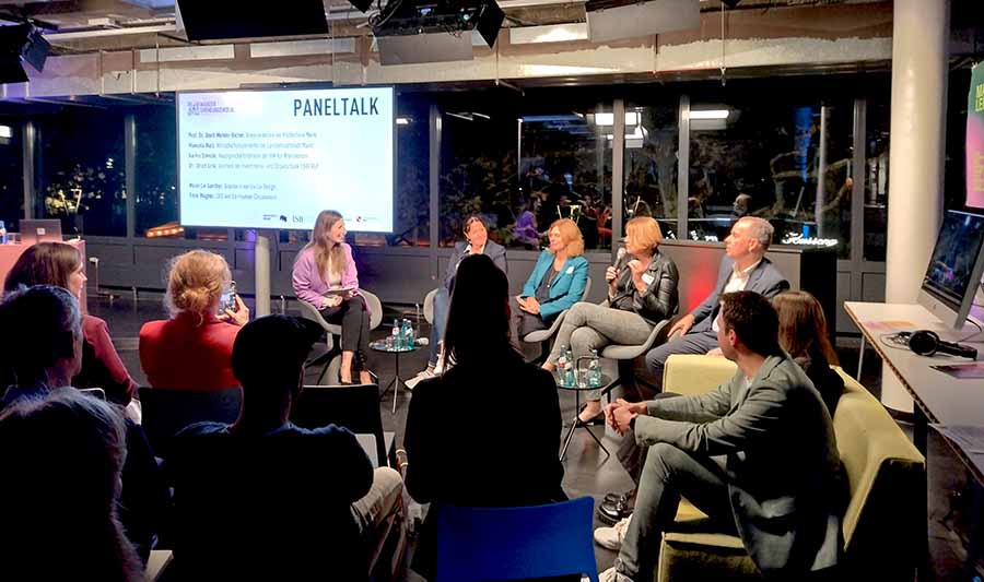 Podiumsgäste bei der Opening Party am Eröffnungstag waren: Malin Liv Günther, Gründerin von Liv Liv Design, Dr. Ulrich Link, Mitglied des Vorstandes der Investitions- und Strukturband (ISB) Rheinland-Pfalz, Manuela Matz, Wirtschaftsdezernentin der Stadt Mainz, Prof. Dr. Anett Mehler-Bicher, Vizepräsidentin für Forschung und Transfer der Hochschule Mainz, Karina Szwede, Hauptgeschäftsführerin der IHK für Rheinhessen sowie Felix Wagner, CEO und Co-Founder Circunomics GmbH.