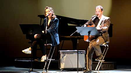 Lisa Mies, Ensemblemitglied am Staatstheater Mainz, führte pointiert durch das abwechslungsreiche Programm der Preisverleihung: Musikalisch eröffnet wurde der Abend mit „Wüdnis“ von Ursula Strauß und Ernst Molden, interpretiert von Dorin Rahardja und Axel Heintzenberg. Literarische Akzente setzten Lesungen aus „Praterstern“ von Monika Helfer und Michael Köhlmeier sowie aus Helfers Werk „Soll ich denn singend zugrunde gehen?“, vorgetragen von Lisa Mies. Ein filmisches, sehr empathisches Porträt der Preisträgerin von Alexander Wasner (SWR) zeigte ein Bild ihres Schaffens. Es zeigte die Autorin in ihrem von Erinnerungsstücken eines wechselhaften und ereignisreichen Lebens eingerichteten Hauses in Vorarlberg.