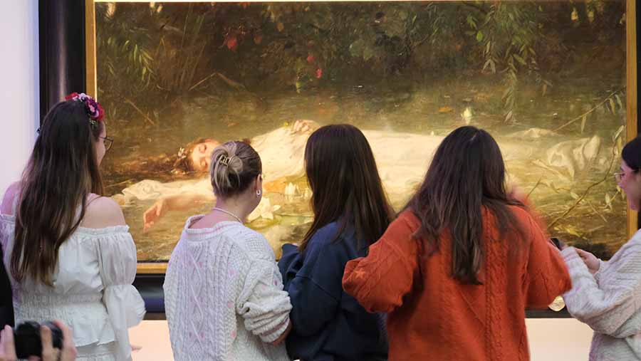 Schließlich hatte sich eine lange Schlange gebildet, um das Original aus der Nähe zu betrachten und als Selfie-Hintergrund zu nutzen. Übrigens erhielten freien Eintritt alle, die als Ophelia verkleidet oder in einem von Taylor Swift inspirierten Outfit erschienen waren.