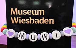 Das Museum Wiesbaden griff diese Symbolik auf und schmückte das Vortragspult mit einem überdimensionalen „Freundschaftsband“, verziert mit Herzchen und der Aufschrift „MUWI“ (für Museum Wiesbaden).
