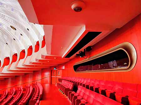 Hätte sich Weltraumaspirant Clint Eastwood nicht gerne in diese Theatersessel gleiten lassen? Im Science-Fiction-Film „Space Cowboys“ lässt er sich im Jahr 1958 von der NASA für eine Weltraummission auswählen. Turins Theater entstand nur wenig später: ein nicht-fiktives Opus der 1960er-Jahre, fürwahr spacig und bis heute eine Einladung, sich anderen Welten zu öffnen. Damals spukt das All herum in vielen Köpfen. Hollywood, Architekten und Designer denken intergalaktisch. Ein Resultat ist der Theaterbau von Carlo Mollino. Jetzt, im Zuge des Retro-Futurismus, ein besonderes Vergnügen mit nostalgischer Note. Die kräftigen Rot- und Lilatöne des Teatro Regio Torino kennt man etwa von den Lavalampen der frühen Raumfahrt-Ära: Sie sitzt mit im Publikum.