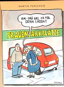 Die Figuren in seinen Cartoons – Normalbürger, Paare, Zyniker, Ahnungslosigkeiten aller Art – wurden bei ihm zu Spiegelbildern einer Welt, die er als zutiefst widersprüchlich, komisch und tragikomisch zugleich inszenierte. Gerade diese Mischung aus Überzeichnung, Lakonie und existenzialistischem Humor machte seine Cartoons unverwechselbar. Kollegen würdigten ihn als einen Künstler, der immer bereit war, einen Schritt weiterzugehen als erwartet – und der gerade deshalb so einzigartig blieb. So hieß es bei Kollegen: „Gut, hat Perscheid schon gemacht!“, darin der Subtext „es selbst nicht besser hinkriegen zu können“, plaudert Martin Sonntag Leiter Caricatura Museum Frankfurt ein wenig aus dem Nähkörbchen.