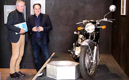 Leiter Caricatura Museum Frankfurt, bewundern Martin Perscheids selbst restaurierte Honda CB 450 (Jahrgang 1966), „mit 190 Kilogramm das schwerste Exponat, das wir je hatten“, so Sonntag. © Foto Diether von Goddenthow