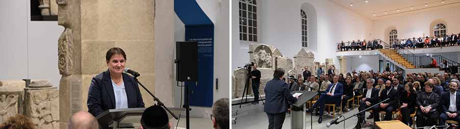 Ministerpräsident Alexander Schweitzer sagte bei der Ausstellungseröffnung unter anderem: „„Die Eröffnung der neuen Ausstellung im Jahr des fünfjährigen UNESCO-Jubiläums von SchUM ist ein starkes und sichtbares Zeichen für die Bedeutung des jüdischen Erbes in Rheinland-Pfalz. Sie unterstreicht den gemeinsamen Anspruch des Landes, dieses einzigartige religiöse, kulturelle und intellektuelle Erbe dauerhaft zu vermitteln und zu bewahren. “ © Foto Diether v. Goddenthow