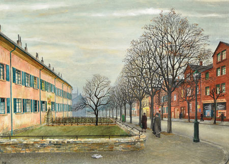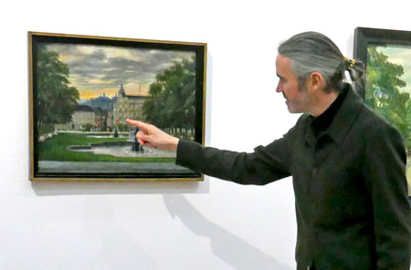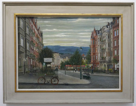 „Im ersten Moment scheinen all diese Stadtansichten mit ihren rollerfahrenden Kindern, den schicken Hutläden oder der Trambahn entlang der Alleen unbedarft, fast naiv“, so Roman Zieglgänsberger, „aber je länger man schaut, macht sich durch die grauen Himmel, das Marionettenartige der Spaziergänger oder einfach durch eine zerknüllte Zeitung auf dem sonst blitzblank gekehrten Trottoir ganz nebenbei eine große Unheimlichkeit breit, die es verhindert, dass wir es uns zu gemütlich machen beim Betrachten der Bilder, die in einer Zeit entstanden sich, die man nicht mehr heraufbeschwört sehen möchte.“