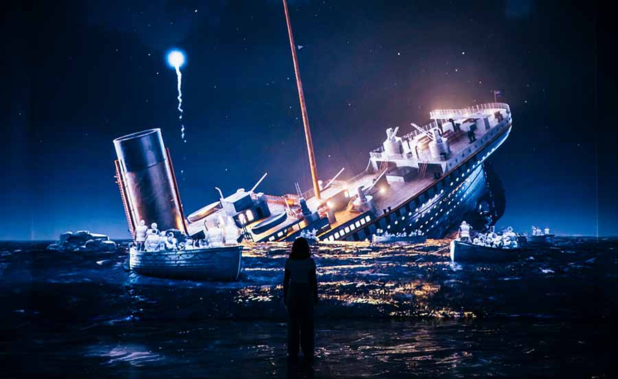 Mit aufwendigen Inszenierungen, modernster Technik und emotionaler Erzählweise lässt die Ausstellung die Geschichte der Titanic lebendig werden und das Publikum erschaudern. Nichts für schwache Nerven! Der Rundgang führt zurück in den April 1912, als im Hafen von Southampton geschäftiges Treiben herrscht. Matrosen eilen über den Pier, Passagiere verabschieden sich, und der gewaltige Rumpf der RMS Titanic ragt imposant in den Himmel. Das größte Schiff seiner Zeit bricht zu seiner Jungfernfahrt nach New York auf – ein Symbol für technischen Fortschritt, Luxus und grenzenlosen Optimismus. Niemand ahnt, dass diese Reise nur vier Tage später in einer der größten Tragödien der Seefahrtsgeschichte enden wird, als die als unsinkbar geltende Titanic mit einem Eisberg kollidiert und mit mehr als 2000 Passagieren und Seeleuten im Atlantik versinkt.