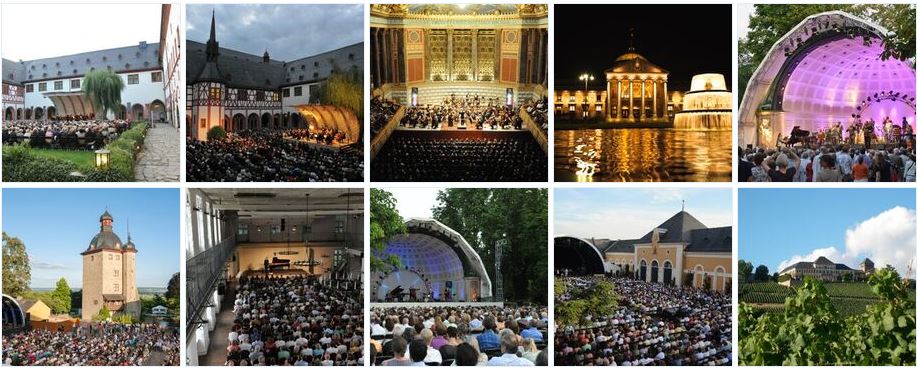 Die Spielstätten reichten von Schloss Johannisberg, Kloster Eberbach und Schloss Vollrads über das Kurhaus Wiesbaden bis zu malerischen Weingütern und Kirchen im Rheingau. Erstmals nach langer Pause wurde auch die Unionskirche in Idstein wieder bespielt, ebenso neue Orte wie die Stadthalle Oberursel und das Museum Reinhard Ernst in Wiesbaden.