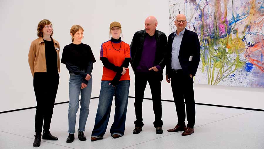 Was so einfach klingt, so Dr. Oliver Kornhoff, Direktor des Museums Reinhard Ernst, „ist ein bemerkenswerter Move. Ein mutiger Move der drei Künstler, sich auf ein solches Unterfangen einzulassen, ein souveräner Move, sich auf Augenhöhe mit Frankenthaler zu begeben, und auch ein vertrauensvoller Move von uns, ihnen unsere Sammlung und eine unserer wichtigsten Sammlungskünstlerinnen anzuvertrauen. Und es ist ein ungewöhnlicher kuratorischer Move.“