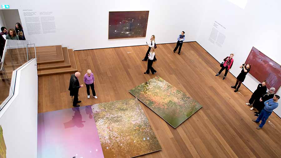 Als präziser Regisseur dieses sich ständig verändernden Kunsterlebnisses hat Adrian Schiess für die Ausstellung im Museum Reinhard Ernst die Platten als Installation konzipiert und zu ausgewählten Werken von Helen Frankenthaler in Beziehung gesetzt. So entsteht ein offener, fließender Dialog zwischen Raum und Bild.