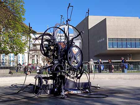 Fribourg lädt schon länger zu der Tour „Jean, Niki und Freiburg“ und ergänzt sie nun mit dem monografischen Rundgang „Auf den Spuren von Jean Tinguely“ . Im Espace Niki des Saint Phalle und Jean Tinguely in Fribourg, einst Tramdepot und Autowerkstatt, was ihm gefallen haben dürfte, ist das konsumkritische Monumentalwerk „Altar des westlichen Überflusses“ Blickfang.