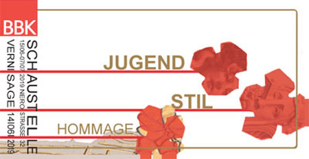 Wie über 24 weitere teilnehmende Institutionen beteiligt sich der Verband Bildende Künstler mit seiner Ausstellung Jugendstil HOMMAGE in der BBK SCHAUstelle ab 15.Juni 2019 am Jugendstiljahr Wiesbaden 2019 / 2020. In dieser Ausstellungen antworten die Künstler/innen Doris Bardong, Julia Belot, Peter Bernhard, Ingrid Heuser, Tine Kaiser, Horst Reichard, Renate Reifert, Renate Schwarz Kraft, Christiane Steitz und Claudia Stöber auf die zeitgeschichtlichen, gesellschaftlichen und ästhetischen Aspekte dieser bedeutenden Bewegung.