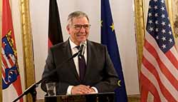 Auch Stadtverordnetenvorsteher Dr. Gerhard Obermayer unterstrich, dass 80 Jahre Hessen, 80 Jahre Leben in Frieden und Freiheit bedeutet, und dies ohne die Hilfe durch die amerikanische Militärregierung nicht möglich gewesen wäre. Sie habe „1945 die neuen Strukturen des Staates Groß-Hessen verfügt“, mit klarer Ansage, nämlich, dass sich die Menschen des Landes im freiheitlichen und demokratischen Geist eines künftigen Rechtsstaats in Würde, aber auch mit eigener Anstrengung ihr neues Leben aufbauen sollten, so Obermayr. „Diese Geburtsstunde, und aus heutiger Sicht wissen wir, diese gelungene Geburtsstunde haben wir unseren amerikanischen Freunden zu verdanken: dem damaligen Präsidenten aber eben auch den Befehlshabern vor Ort, allen voran General Newman. Die amerikanische Militärregierung hat Wiesbaden zur Hauptstadt bestimmt. Am 1. Oktober überbrachte der amerikanische Colonel James R. Newman mit der Lizenz für den Kurier zugleich auch die Nachricht, dass Wiesbaden Sitz der Landesregierung des neuen Bundeslandes sein werde. Dies war am 2. Oktober der Aufmacher der ersten Ausgabe der Zeitung. Am 12. Oktober 1945 wurde Wiesbaden als neue Hauptstadt offiziell proklamiert, so Obermayr.