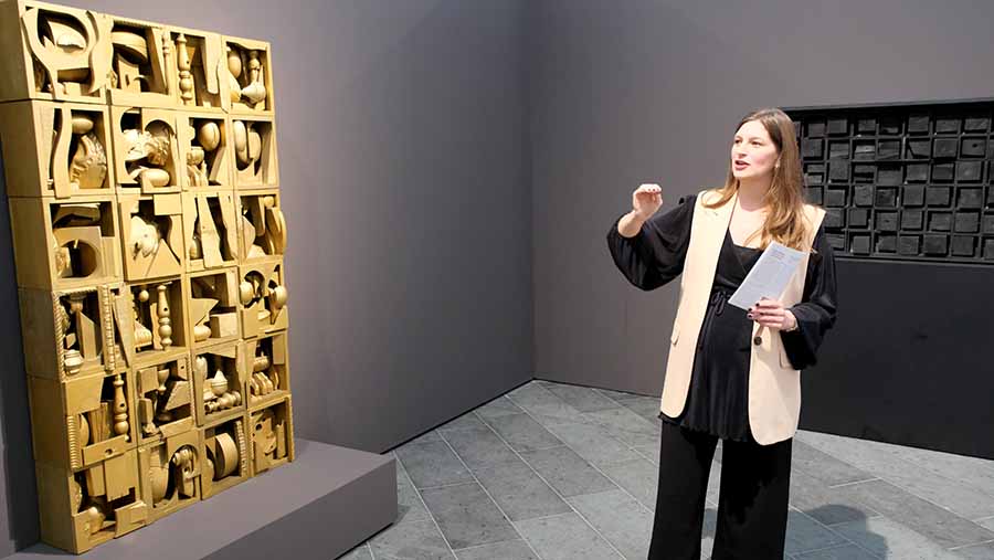 Ein weiterer Aspekt sei die digitale Innovation. So habe die museumseigene Digital Unit für diese Ausstellung einen interaktiven Bildschirm entwickelt, der Besucherinnen und Besuchern ermöglicht, in Leben und Werk Louise Nevelsons einzutauchen. Dort findet man zusätzliche Hintergrundinformationen und kann ihre Kunst auf intuitive Weise erleben.