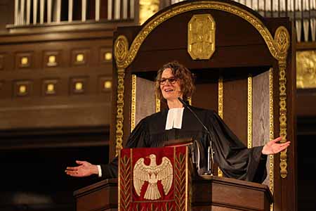 Im Zentrum der Feier stand die Predigt von Kirchenpräsidentin Christiane Tietz, die erstmals den Reformationsgottesdienst gestaltete. Einen weiteren Impuls brachte Landesjugendpfarrer Matthias Braun ein, der das Thema aus Sicht der jungen Generation beleuchtete.