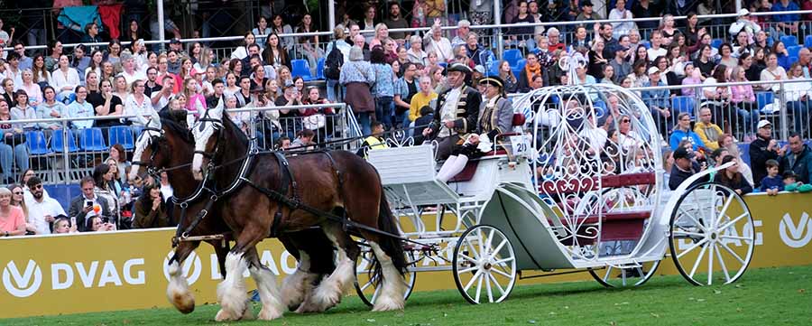 Eröffnet wurde der Abend wie gewohnt schwungvoll mit einem traditionellen Kutschenkorso. Ein besonderer Hingucker dabei war das imposante Achter-Gespann der Mini-Horses vom Pony Team Litzius. Danach beeindruckte die Disziplin „Working Equitation“ mit ihren ritterturnierähnlichen Geschicklichkeitsübungen, bei denen auch bewegliche menschliche Hindernisse einbezogen wurden. Die Choreografie „Nah & Fern“ begeisterte mit farbenfrohen Kostümen und kreativer Umsetzung.