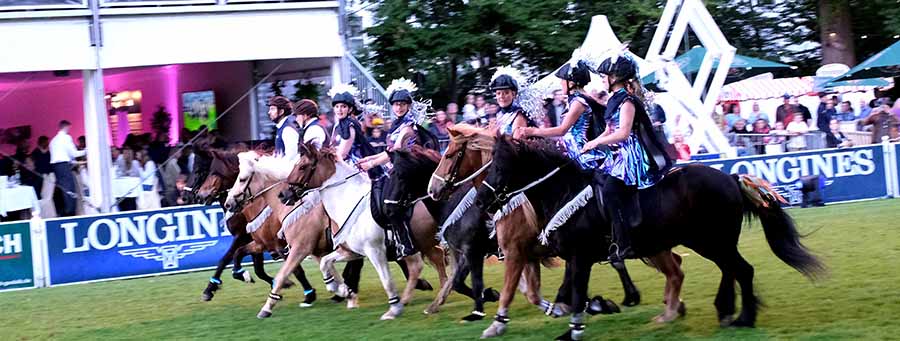Wiesbaden. Petrus zeigte sich bei der 29. Pferdenacht des Wiesbadener Reit- und Fahr-Clubs (WRFC), der seit 1929 das Longines Pfingstturnier veranstaltet, nicht gerade von seiner zuschauerfreundlichsten Seite. Doch das tat der Begeisterung des Publikums keinen Abbruch. Wie gewohnt bildete die von der Wiesbadener Spielbank präsentierte Pferdenacht den festlichen Auftakt des Longines Pfingstturniers in Wiesbaden – ein Pflichttermin für alle Reitsport-Fans und ebenso für jene, die Freude am kunstvollen und harmonischen Zusammenspiel von Pferd und Reiter haben. Der Startschuss zur inzwischen 87. Auflage der traditionsreichen Sportveranstaltung entfachte große Vorfreude auf die kommenden Turniertage im malerischen Ambiente des Biebricher Schlosses.