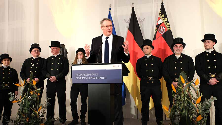 Auch in Krisenzeiten den Mut nicht zu verlieren, sondern auf die gemeinsamen Stärken zu setzen, war der Tenor des diesjährigen traditionellen Neujahrsempfangs am 8. Januar 2026 in der rheinland-pfälzischen Staatskanzlei. Trotz des winterlichen Wetters waren aus allen Teilen Rheinland-Pfalz’ rund 300 Gäste aus Politik, Wirtschaft, Wissenschaft, Kultur und Zivilgesellschaft der Einladung von Ministerpräsident Alexander Schweitzer, seiner Frau Barbara sowie den Mitgliedern des Kabinetts gefolgt. Für kleine Glücksmomente sorgten Schornsteinfegerinnen und Schornsteinfeger, die die Gäste bereits im Foyer mit jeweils einem kleinen traditionellen Glücksbringer begrüßten. Dort präsentierten sich auch an einem Infostand Vertreterinnen und Vertreter des Kultursommers Rheinland-Pfalz 2026 mit dem Motto „Die Goldenen Zwanziger“.