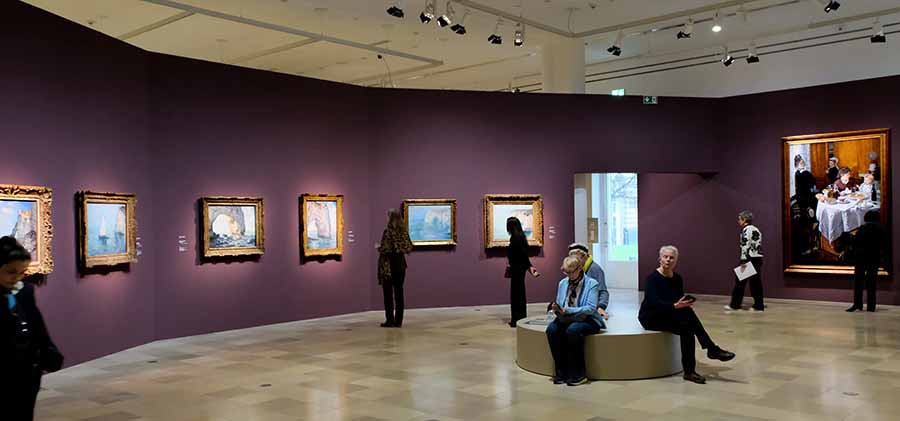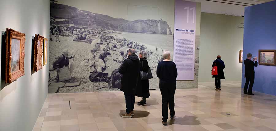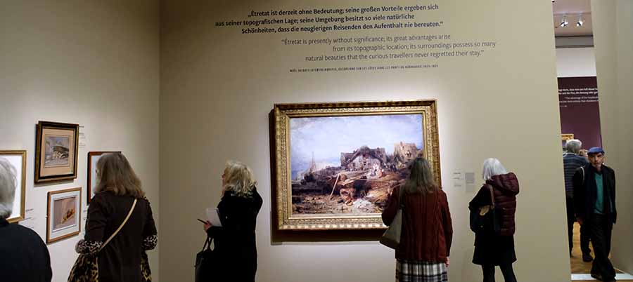 Wie sich in der Ausstellung, die mit Henri Matisses Étretat-Werken von 1920 in Raum 12 endet, eindrücklich nachvollziehen lässt, spielte Étretat eine bedeutende Rolle bei der Entstehung einer neuen Malerei, die als Impressionismus in die Kunstgeschichte einging. Das Interesse der Künstler galt vor allem der charakteristischen Klippenlandschaft, die zugleich als aufregend schön und bedrohlich wahrgenommen wurde. Der Betrachter staunt dabei, wie spannend eine Ausstellung sein kann, deren Fokus sich ganz auf die künstlerische Erfassung der imposanten Felsenküste richtet. Immer mehr Maler und Schriftsteller, später auch Fotografen, reisten nach Étretat und machten den abgelegenen Ort durch ihre Werke über die Grenzen Frankreichs hinaus berühmt. Mit der zunehmenden touristischen Erschließung um 1850 entwickelte sich Étretat zu einem beliebten Seebad und zu einem Treffpunkt für Künstler, Intellektuelle und das Pariser Bürgertum: Gustave Courbet malte hier seine berühmten Wellenbilder, Guy de Maupassant erhob Étretat literarisch zu einem Sehnsuchtsort, und der Gentleman-Gauner Arsène Lupin, die Romanfigur von Maurice Leblanc, hortete hier seine Kunstschätze.
