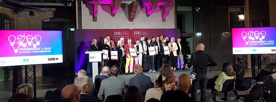 Mainz – Sie machen Mut. In einer Phase, in der viele Unternehmen unter wirtschaftlichem Druck stehen und sich die Rahmenbedingungen für Gründungen nicht immer leicht gestalten, zeigen fünf rheinland-pfälzische Pioniergeister eindrucksvoll, was mit einer starken Idee, Ausdauer und klarem Zukunftsblick möglich ist. Für diesen Elan wurden sie gestern im Foyer der Investitions- und Strukturbank Rheinland-Pfalz (ISB) mit dem „Pioniergeist 2025“ geehrt – einer Auszeichnung, die mit insgesamt 36.500 Euro dotiert ist und gemeinsam von der ISB, den Volksbanken und Raiffeisenbanken in Rheinland-Pfalz, dem Südwestrundfunk sowie dem rheinland-pfälzischen Wirtschaftsministerium vergeben wird.
