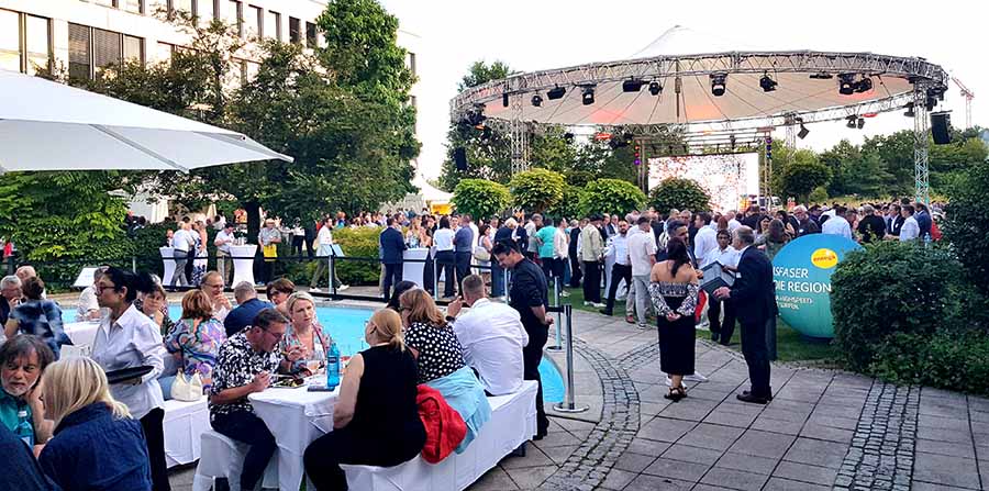 Auf dem diesjährigen Sommerempfang der Wirtschaft am 21. Juli 2023, zu dem VRM, die IHK für Rheinhessen und die Handwerkskammer Rheinhessen eingeladen hatten, diskutierten vor rund 500 Gästen IHK-Präsident Peter Hähner, HWK-Präsident Hans-Jörg Friese und VRM-Herausgeber Joachim Liebler über die wirtschaftliche Lage der Region vor dem Hintergrund der großen Herausforderungen „Fachkräftemangel“, „Energiekrise“, „Inflation“ usw. VRM-Chefredakteur Dennis Rink moderierte den Talk. Anschließend