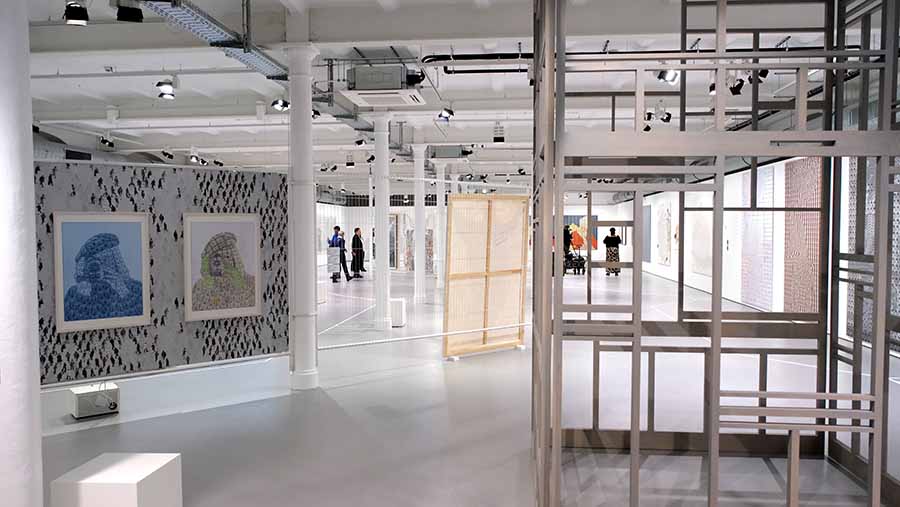 Bereits in den 1960er- und 1970er-Jahren legte Bayrle den innovativen Grundstein seiner Superformen. Das Wiederholen, Vernetzen und Verweben von Einzelelementen zu einem Gesamtbild prägt sein Werk bis heute und ist eng mit seiner Biografie verbunden. Nach einer Ausbildung als Maschinenweber wandte er sich der Gebrauchs- und Druckgrafik zu. Die dort angewandten Techniken führte er sowohl materiell als auch konzeptuell weiter und ebnete so den Weg vom Analogen zum Digitalen. Seine Arbeiten treten dadurch in einen besonderen Dialog mit dem Ausstellungsort, dem Industriegebäude der ehemaligen Dondorf-Druckerei.