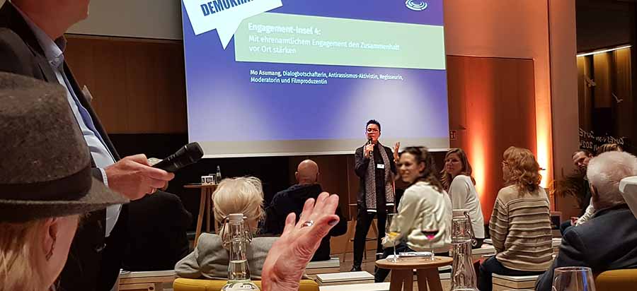 Asumang unterstrich, dass Dialog kein Zeichen von Schwäche, sondern von Stärke sei: „Mit Menschen zu sprechen, die anders denken, heißt nicht, ihre Meinung zu übernehmen. Es heißt: Mensch bleiben. Aber zuhören, widersprechen, Grenzen setzen – und die Würde des anderen achten ist nicht leicht. Ich bin sicher, all diese Fähigkeiten sind in uns, wir müssen es nur üben.“ Sie riet dazu, auch im Konflikt Respekt und Würde zu bewahren, versöhnliche Gesprächsformen zu fördern und sich mit Gleichgesinnten zu vernetzen.