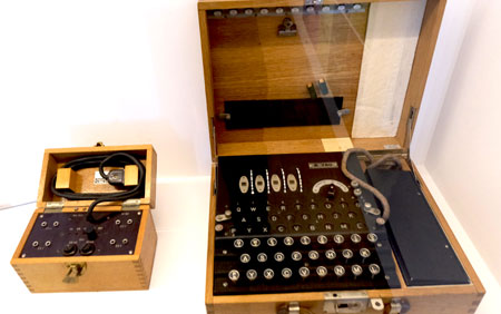 Historische Apparaturen wie die Verschlüsselungsmaschine Enigma gewähren Einblicke in die Realität von Überwachung und Geheimhaltung. Parallel dazu zeichnet die Populärkultur ein glanzvolles Bild, das den Mythos des Spions zwischen Helden- und Schattengestalt prägt und das Publikum bis heute begeistert. Bereits im 19. Jahrhundert etablierten sich Agentenromane als eigene Erzählgattung und auch die Filmgeschichte hat viel zur Popularität des Themas beigetragen. Ausgewählte Buchcover, Kinoplakate und Filmauszüge zeigen in der Ausstellung, wie sich die Unterhaltungsbranche von der Spionagerealität anregen ließ. So verweist auch der Titel der Ausstellung „We Never Sleep“ auf das Bild des stets wachsamen Spions, der – immer in Bewegung – seine Identitäten wechseln und im Verdeckten agieren muss.