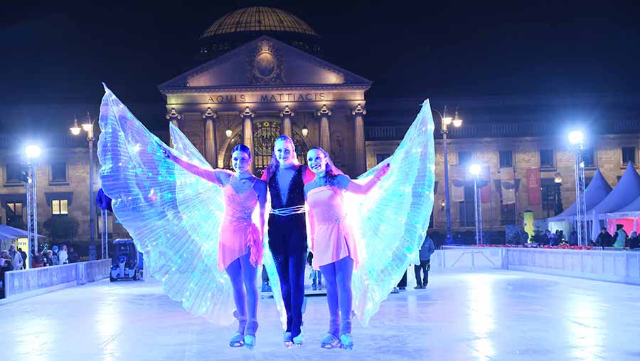 Ein besonderer Höhepunkt der feierlichen Eröffnung von „Wesbaden on Ice“ vor dem Kurhaus waren die poetischen Eiskunst-Darbietungen von „butterflies on ice“, dem Eiskunstlauf-Ensemble der Ice Academy Mainz. © Foto Diether von Goddenthow