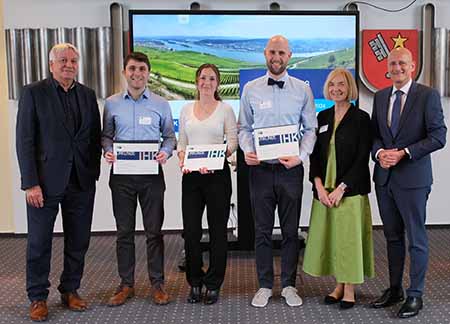 Am 20. Juni 2024 – Eine junge Wissenschaftlerin und zwei junge Wissenschaftler haben durch ihre herausragenden Abschlussarbeiten auf sich aufmerksam gemacht, in denen sie die Stabilität von Windenergieanlagen untersucht, die Alterungsprozesse von Brennstoffzellen analysiert und eine mobile App zum Deutschlernen entwickelt haben. Für ihre Leistungen wurden sie am Mittwoch, den 19. Juni 2024, von der Industrie- und Handelskammer für Rheinhessen mit dem IHK-Preis 2023 ausgezeichnet. Die mit insgesamt 5.000 Euro dotierte Auszeichnung für den akademischen Nachwuchs erhielten der Projektingenieur Dr. Lutz Loh für seine Dissertation an der Hochschule Mainz, der Automobiltechniker Steven Liebler für seine Masterarbeit an der Technischen Hochschule Bingen und die Wirtschaftsinformatikerin Tolgonai Muratbekova für ihre Bachelorarbeit an der Hochschule Worms. Den Sonderpreis „Beste der Besten“, der mit 2.500 Euro dotiert ist, erhielt die Personalfachkauffrau Chantal Richter für den besten Abschluss in der beruflichen Weiterbildung.